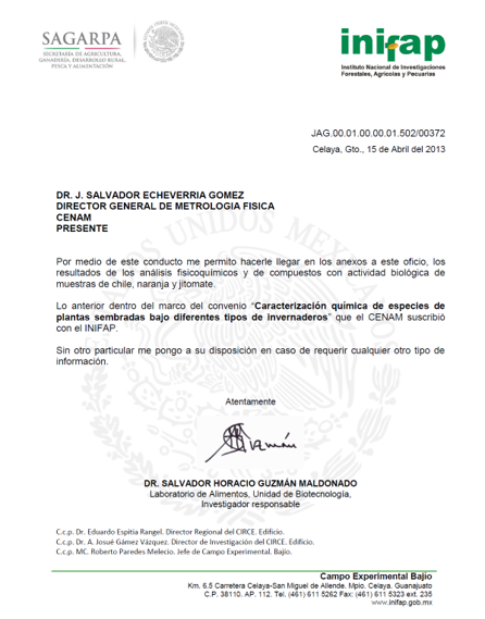 Our Bioclimatic Covers achieved the certification of performance and differentiation of nutritional content by the Centro Nacional de MetrologĂa(CENAM, National Center of Metrology) in collaboration with Inifap (National Institute for Forestry, Agricultural and Livestock Research), and SecretarĂa de Agricultura y Desarrollo Rural (Mexico's Agriculture Ministry).